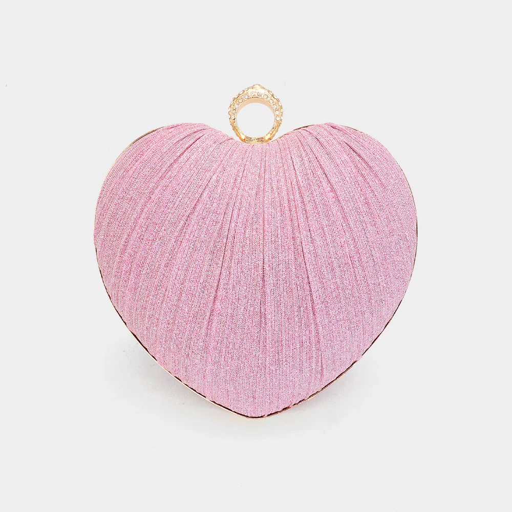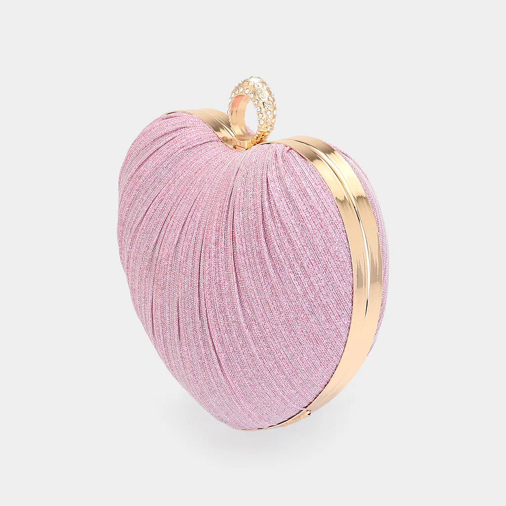 This charming heart-shaped evening clutch is perfect for adding a touch of elegance to any outfit. Crafted from a textured pink polyester fabric, this bag offers a sophisticated feel while ensuring durability and affordability.