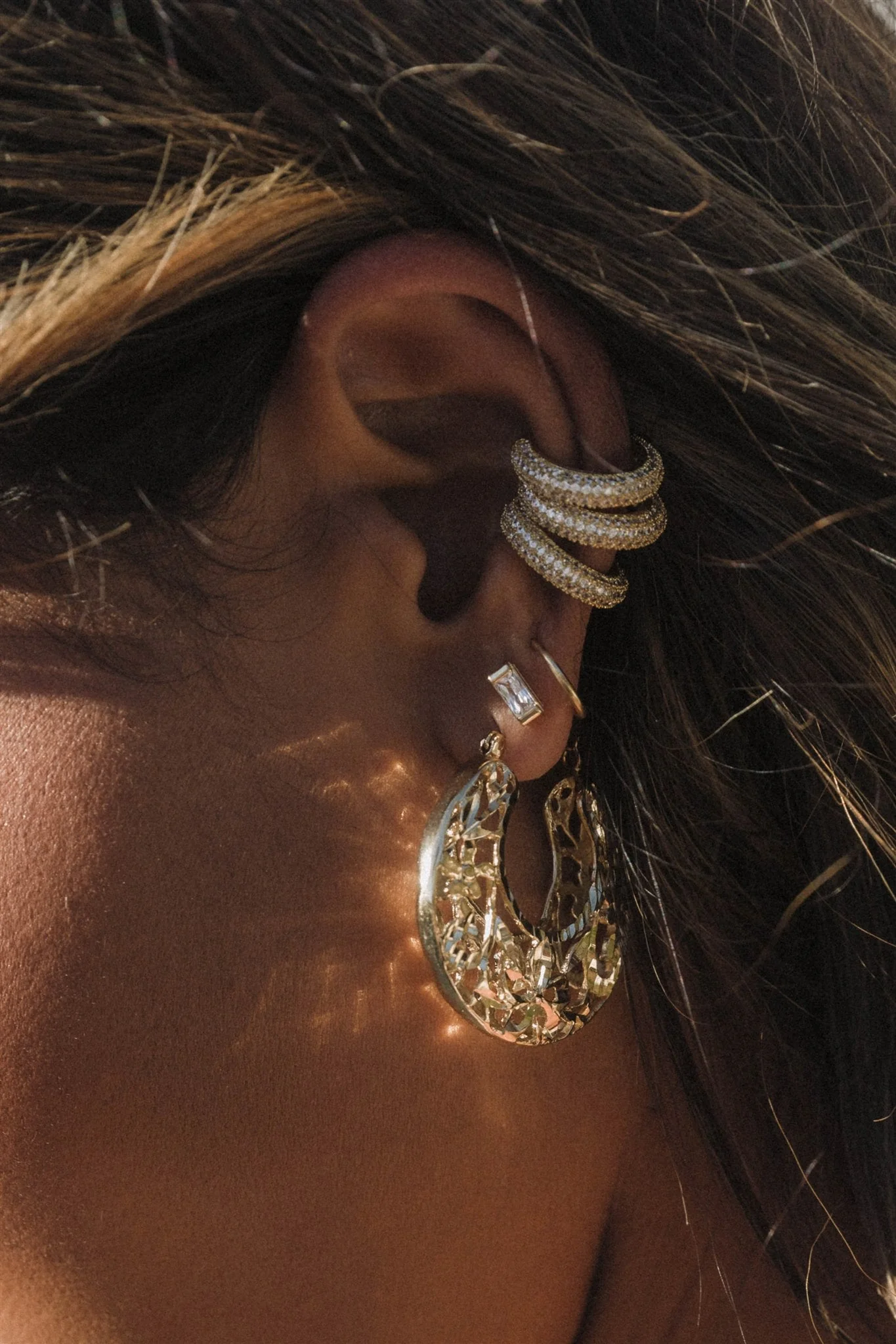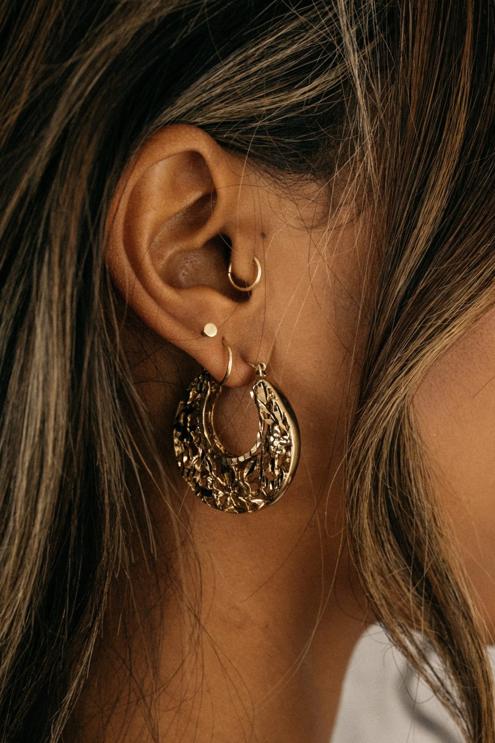 These captivating hoop earrings are expertly crafted from lightweight, high-quality brass, providing durability without compromising on comfort. The intricate floral motif is meticulously carved, offering a sophisticated and artistic design that draws the eye.