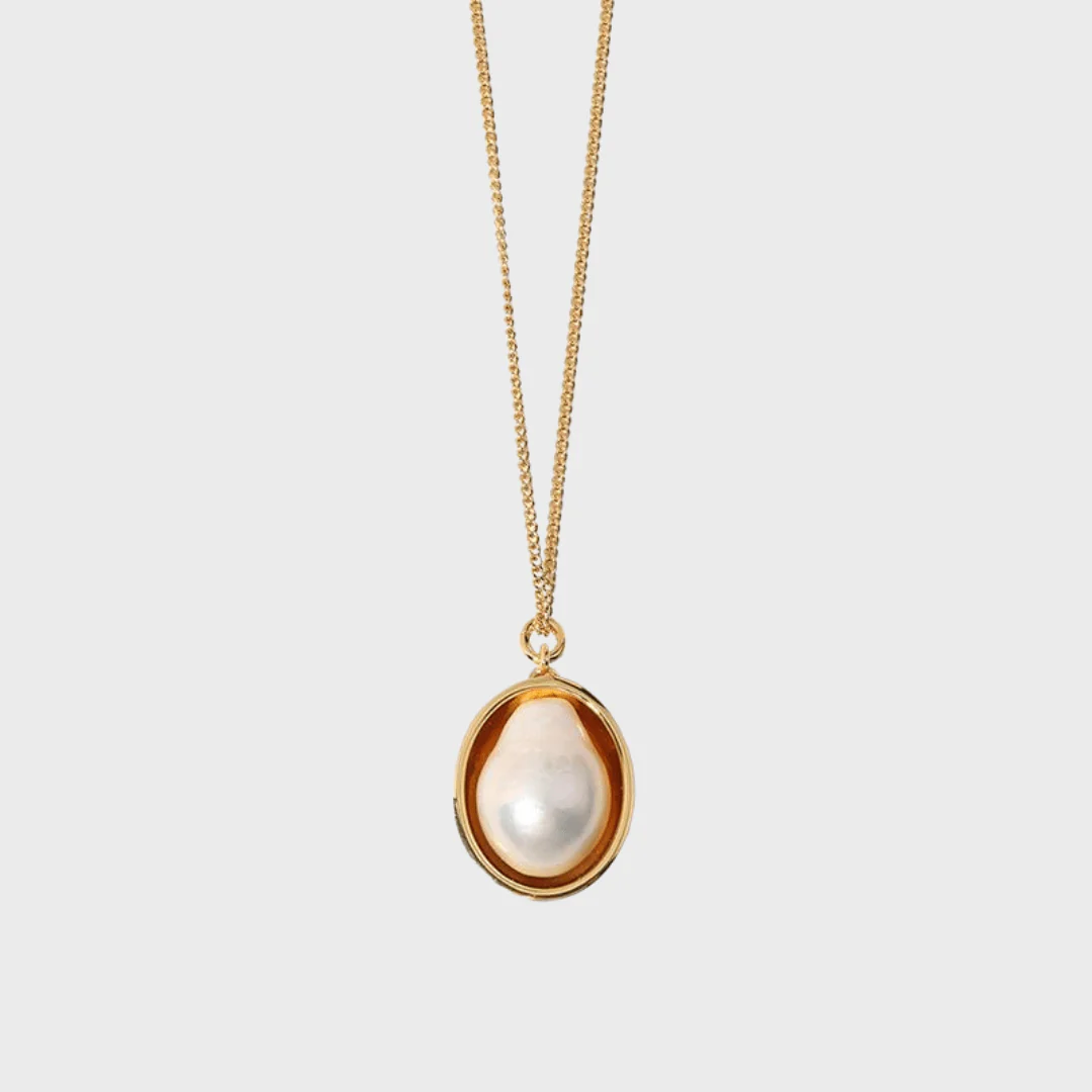 This chic and stylish necklace features a carefully crafted simulated pearl, offering an elegant touch to any outfit. The pearl is delicately encased in a vibrant warm-toned pendant, adding sophistication and a subtle hint of color.