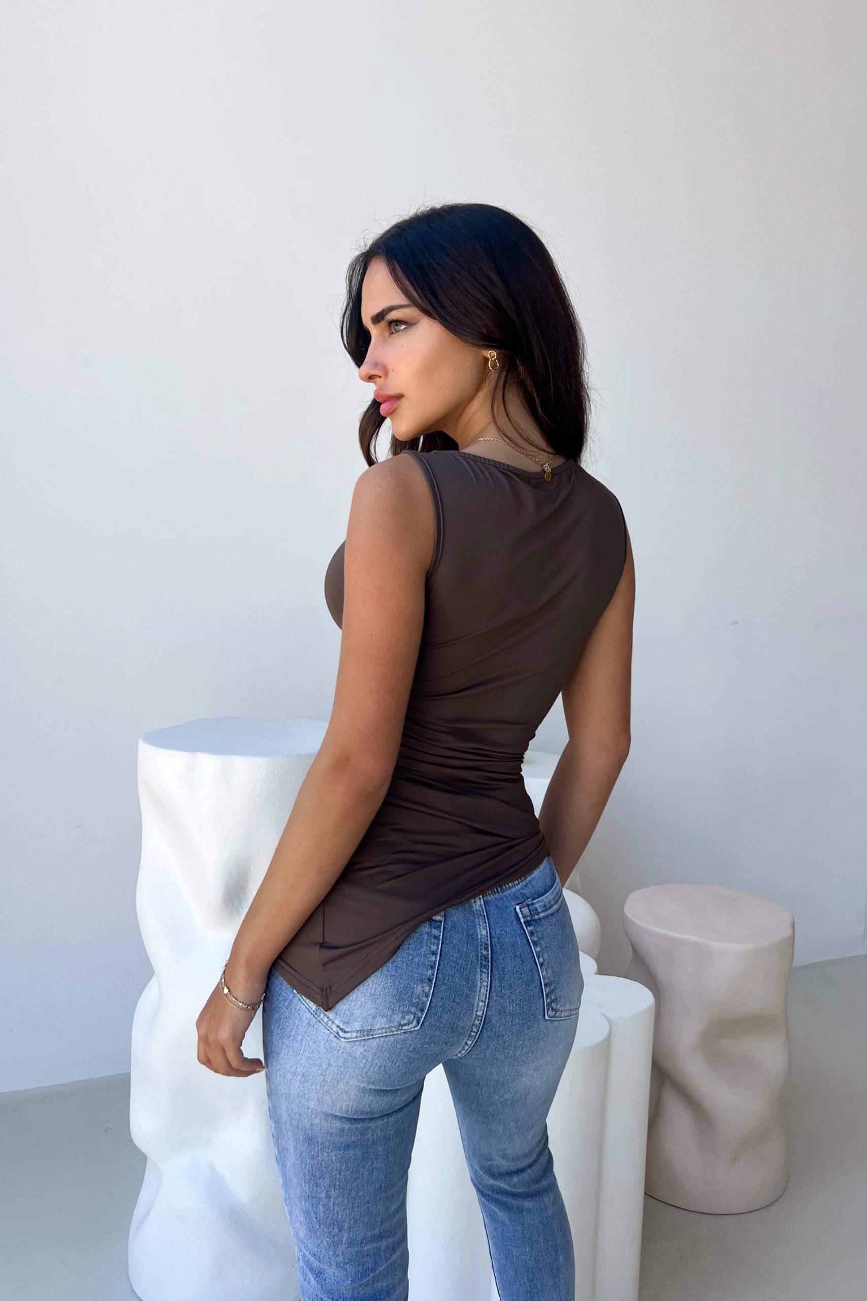 Sleek Brown Sleeveless Top